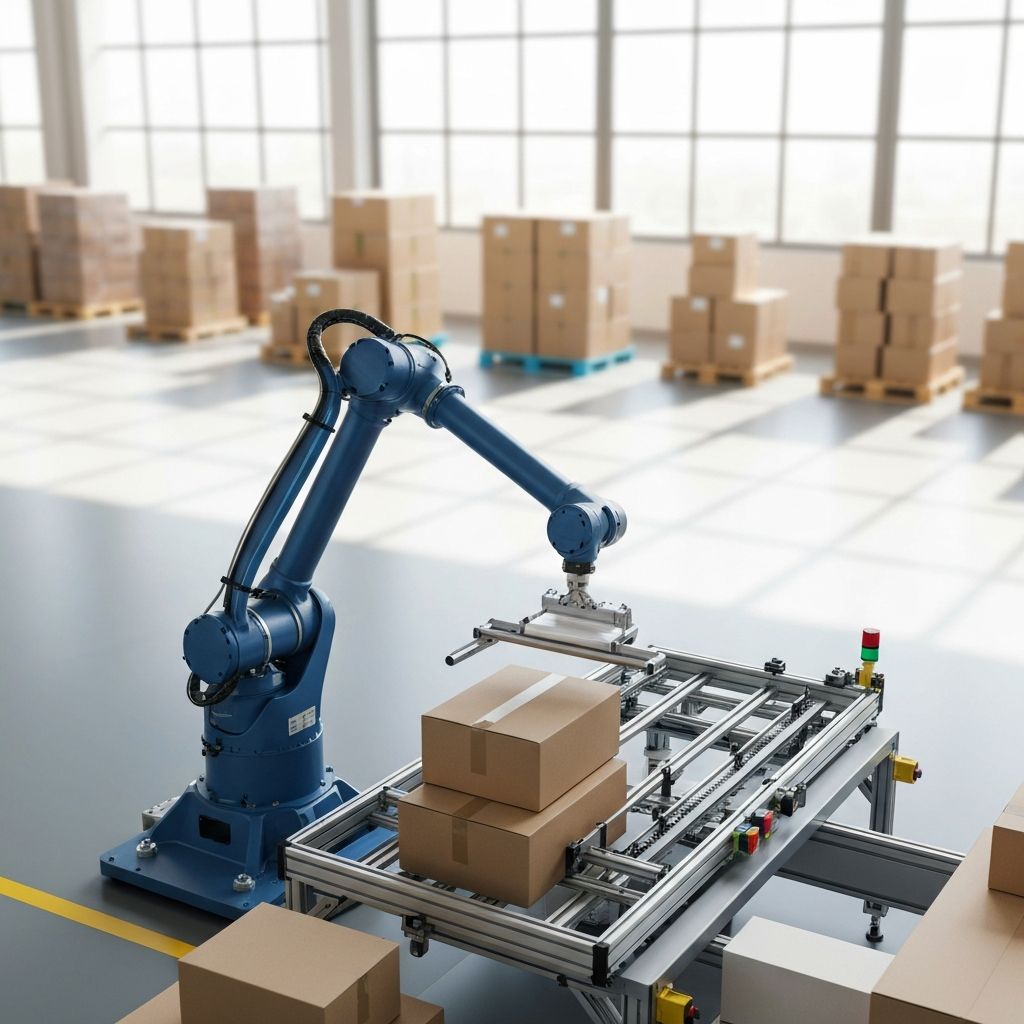 Packoid robots are specialized automation systems designed for packaging operations in manufacturing and logistics facilities. They handle tasks like boxing, wrapping, labeling, and palletizing products with high speed and precision.